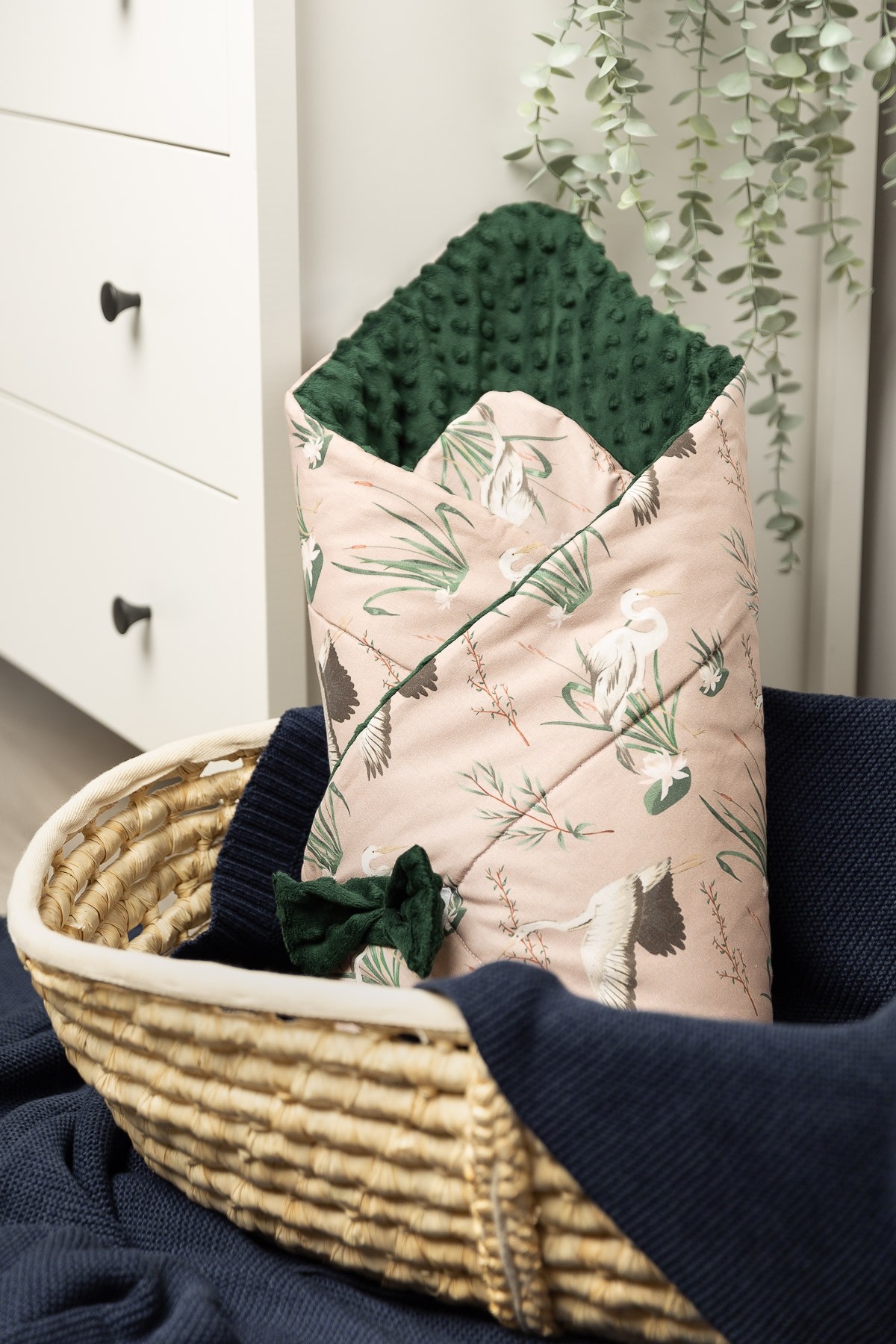 Paturica nou-nascut Sensillo Minky Wrap 80×80 cm Birds Beige Emerald