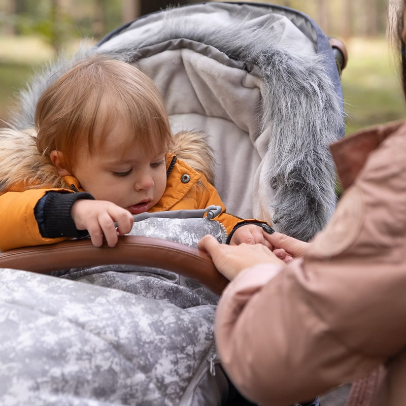 Datorita materialului pufos, antialergic, sacul ofera protectie eficienta si confort. Designul stilat si gluga din blana artificiala ofera cun aspect unic. Sacul de dormit se potriveste in orice carucior sau landou.