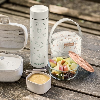 - Pentru a transporta containerele confortabil peste tot, setul include o geanta izoterma, cu un interior izolat pentru a ajuta la mentinerea unei alimente mai bune, realizata cu modele atractive inspirate din natura, cu doua modele care sa satisfaca gusturile tuturor parintilor.